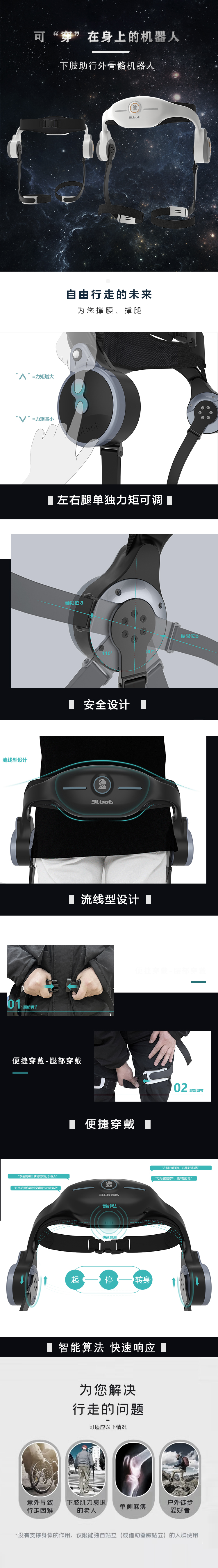 專門針對腿腳乏力老人、中風偏癱患者、步態(tài)異常人群提供的一款助行設備,產品采用人工智能算法,能夠主動響應患者下肢的起、停、擺等不同動作;采用智能力矩的輸出方式,可以根據(jù)患者腿腳乏力程度,給予不同力矩的助力,能夠滿足平地走路、爬山上坡、跑步鍛煉等不同場景需求。產品整體按照人機工程學原理進行設計,能夠滿足不同人群的穿戴要求,穿戴簡單、操作方便;整機采用鋁合金、碳纖維、ABS等材質,輕便、耐用。