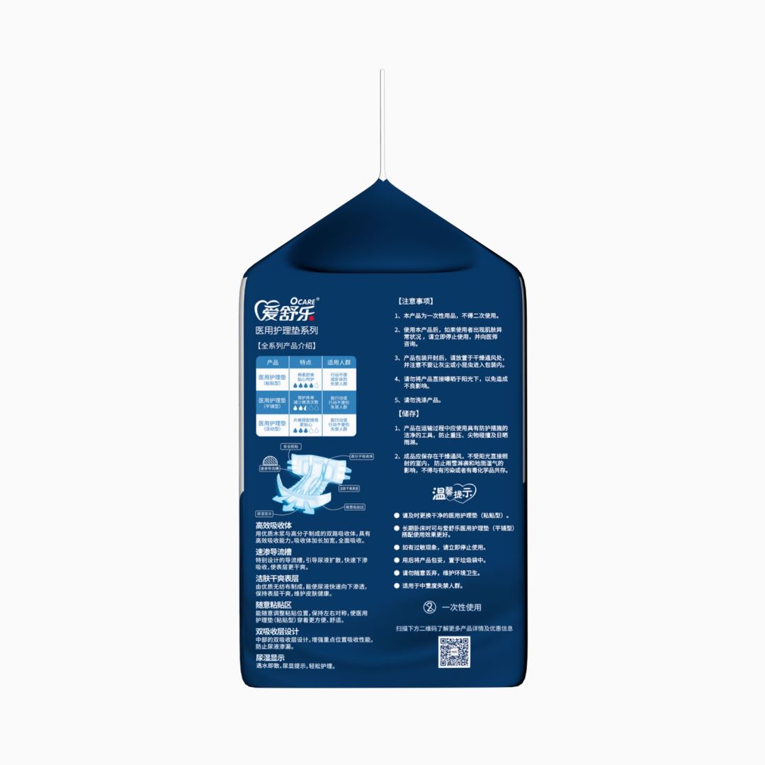 Medical and nursing level multiple certifications, safe and reliable, and safe to use; Anti odor and antibacterial patent certification, avoiding awkward odors; PE breathable bottom film material with a specially designed moisture locking cotton core to keep you dry at all times; A skin friendly soft surface layer that reduces bacterial growth and the production of bedsores; The design of a patterned diversion layer accelerates the absorption of urine and effectively locks in water Product specifications: L size hip circumference 650mm * 800mm, XL size hip circumference 800mm * 960mm Packaging specification: 10 pieces/8 bags/box