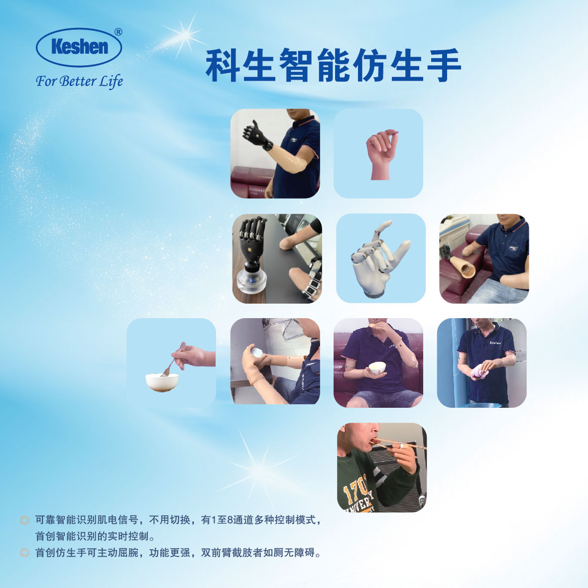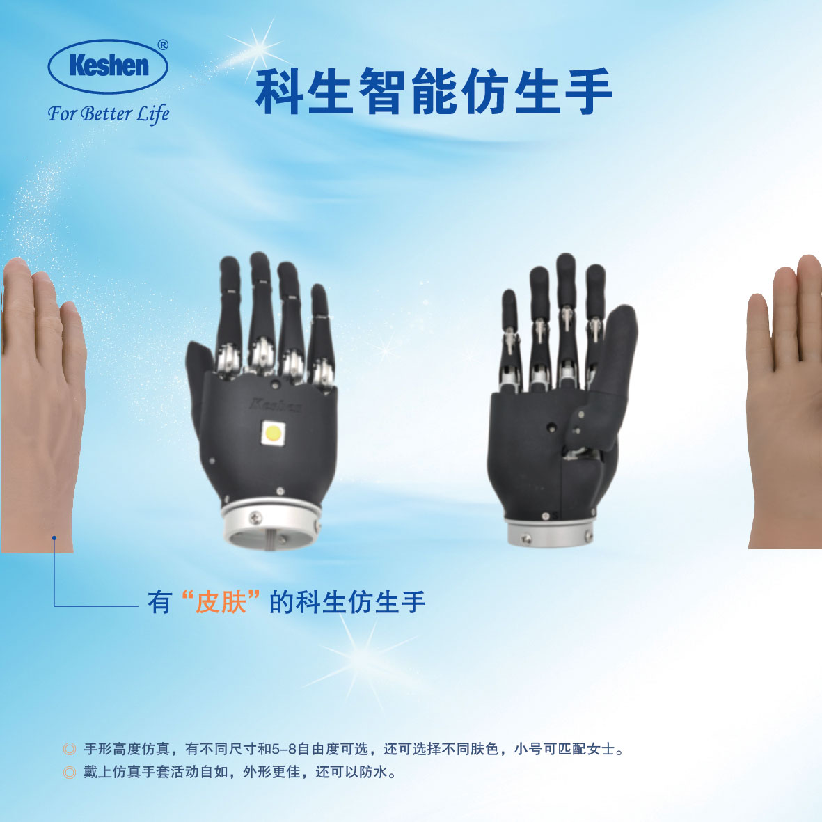 ◎Independent Finger Movement: Each finger moves independently, allowing for natural and complex movements. ◎Adjustable 2-D Thumb: Continuous adjustment for precise positioning. ◎ Myoelectric Upgrade: Upgradeable to myoelectric control for enhanced functionality, including wrist flexion/extension/rotation, resulting in a bionic hand with 5~8 degrees of freedom. ◎Compatibility: Compatible with the Keshen Intelligent Myoelectric Arm. ◎Program Modes: Offers 24 program modes accessible via a mobile app for user convenience, such as Index Point, Key Grip, and Precision Close. ◎ Optional Silicone Glove: The KS-bionic hand can be paired with a silicone glove for a highly realistic appearance.
