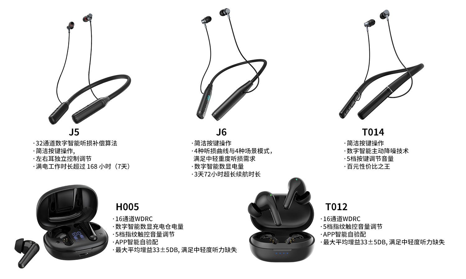 1. Neckband design, long-term wear without compression 2. Easy button operation 3.4 types of hearing loss curves and 4 scene modes to meet the needs of moderate to severe hearing loss 4. Digital Intelligent power display 5.3 days and 72 hours of ultra long battery life