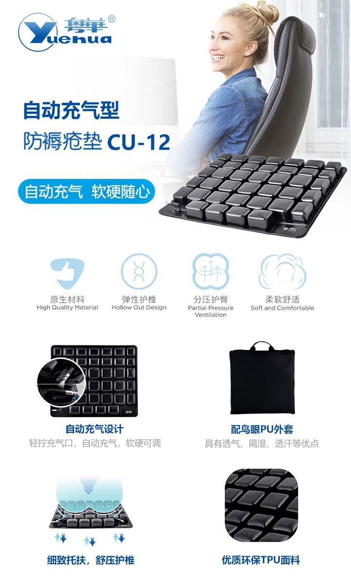 YHMED adopts the Dynamic Pressure Monitoring Systemto trace the real-time internal pressure of the cushion.CU-12 Seat Cushion provides the best support and decompression effect for the user.