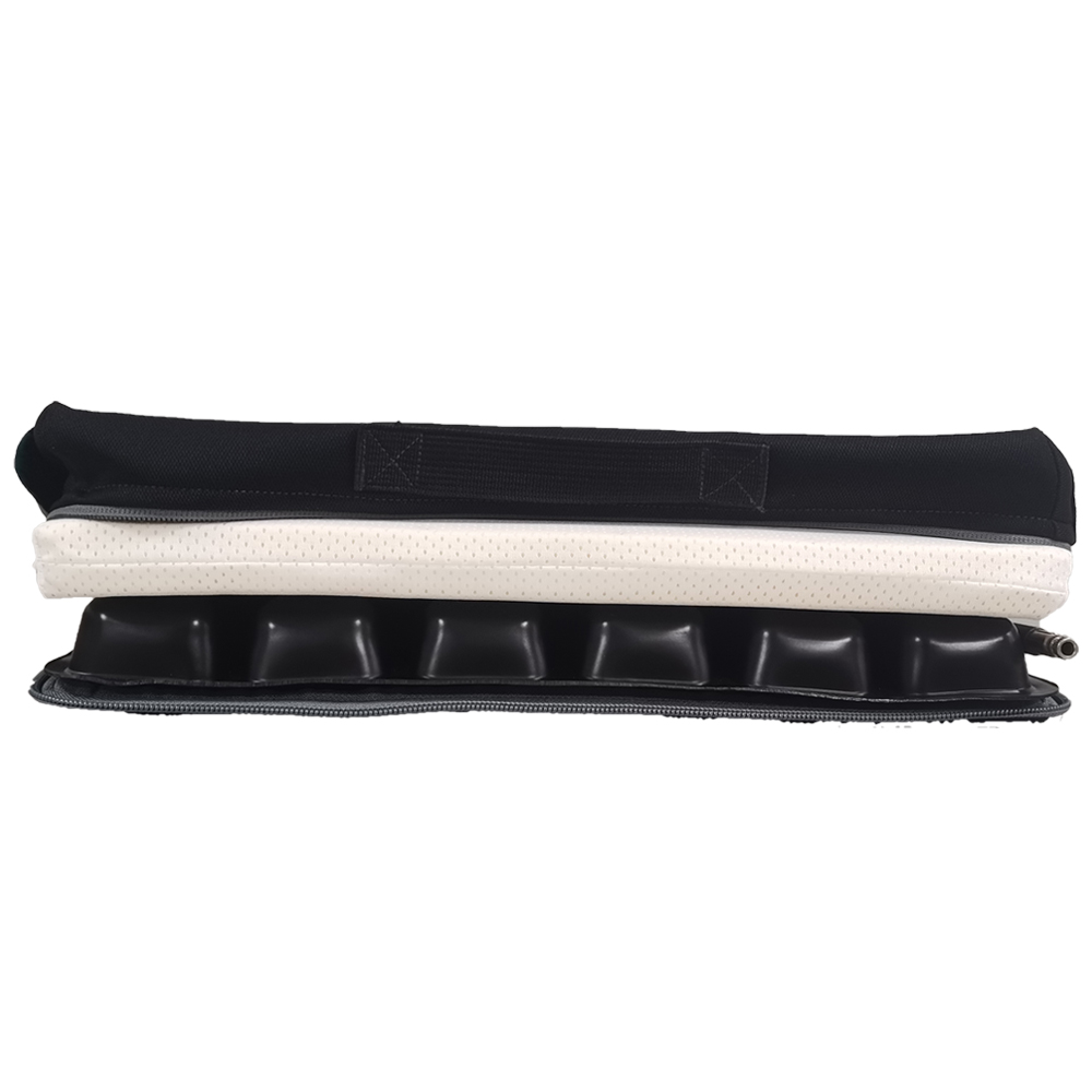 The 20 9.5cm-high cells in Nylon+PVC are particularly comfortable.They are fixed by means of press-studs.Very easy to install, useand maintain with the possibility of adjusting the pressure according to the patient's weight.They are also easily interchangeable in case of breakage.The pump can be hung tothe end of the bed by means of two hooks.