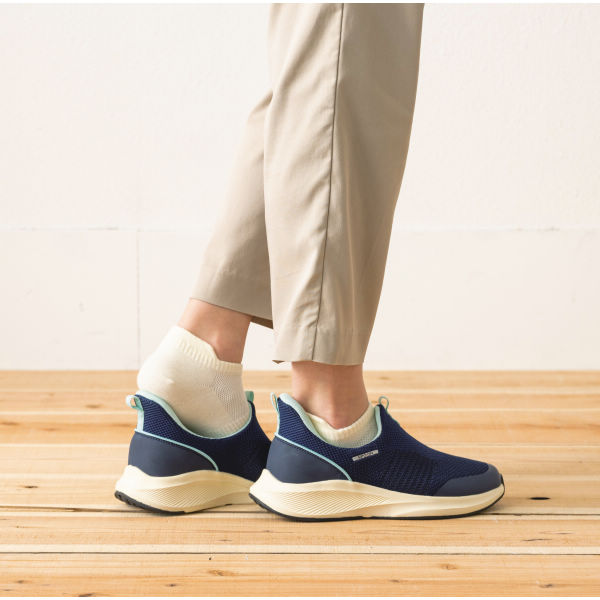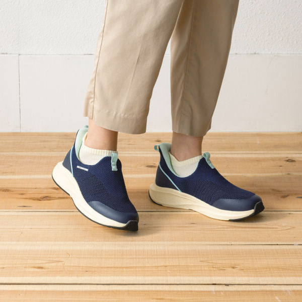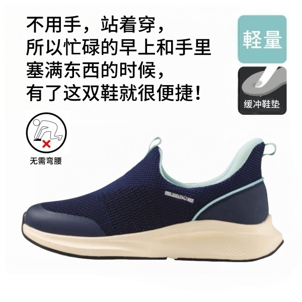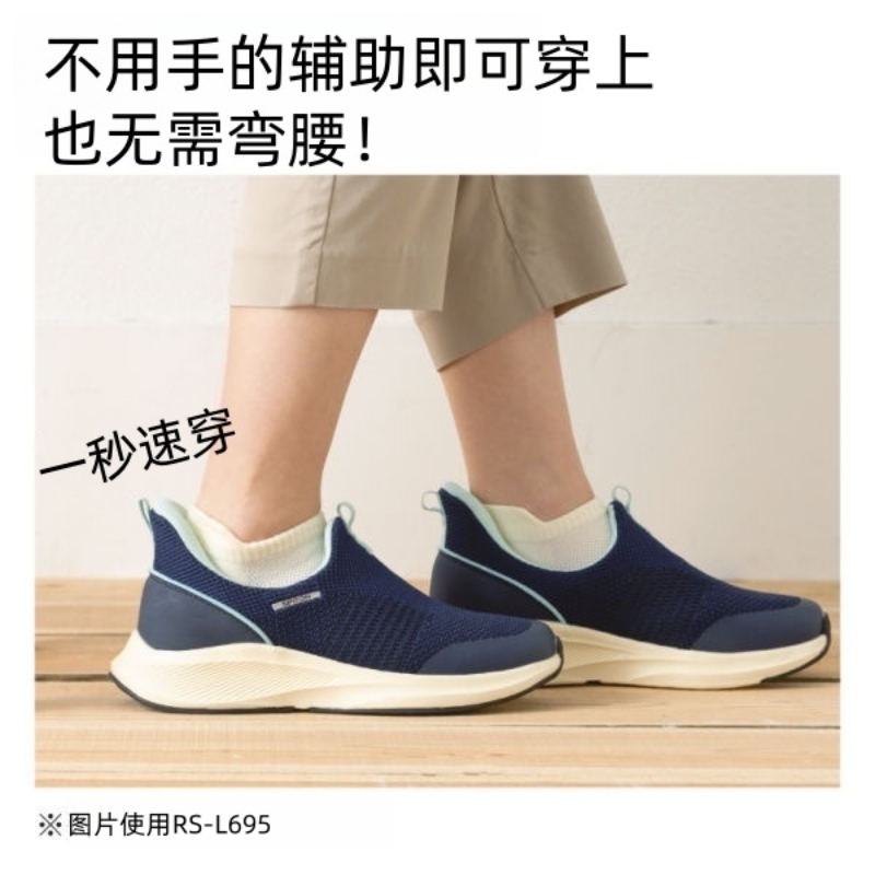 Hands-free shoes that can be put on while standing, without using hands or bending over. They are suitable for the elderly, pregnant women and people with physical inconveniences.