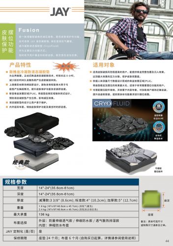Fusion Cryo為新推出冷凝款液態(tài)凝膠墊,為業(yè)界翹楚,主動式降溫液態(tài)凝膠墊技術,時效長達8小時,減少因長時間久坐聚熱而產生皮膚破損風險。 Fusion 有液態(tài)凝膠、單區(qū)氣囊和雙區(qū)氣囊配置選擇,是一款提升皮膚保護以及坐姿擺位舒適度的減壓座墊。 可接受定制,據尺寸聯系廠商。