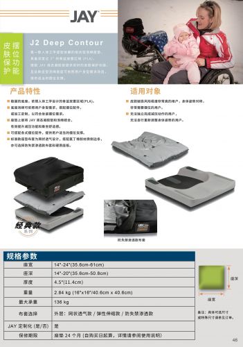 J2 Deep Contour 是一款座墊上層由液態(tài)凝膠墊和泡棉組合的減壓座墊,適合皮膚破損程度非常高的用戶,身體姿勢對(duì)稱以及非常需要擺位功能的用戶。