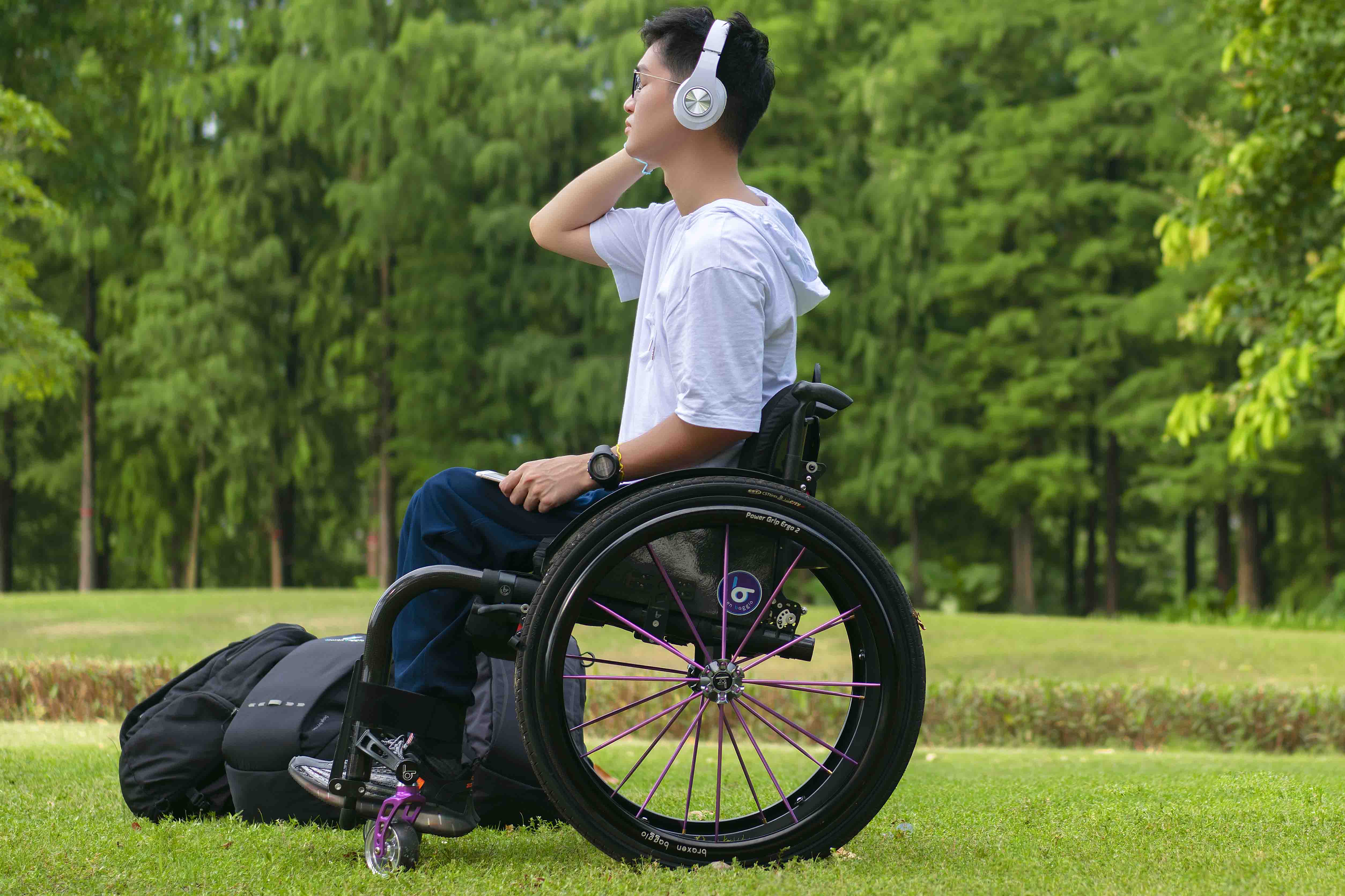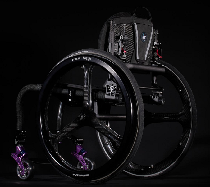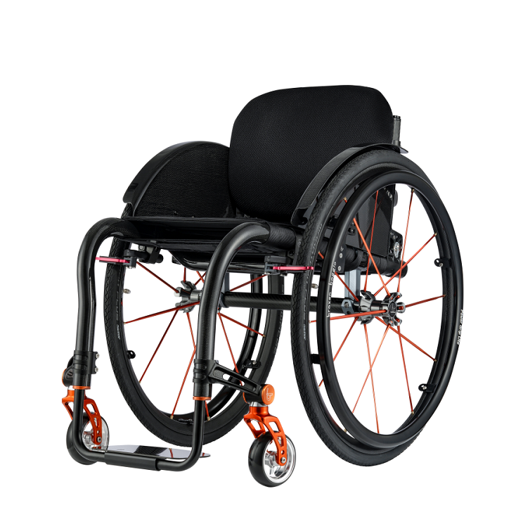主車架采用航空航天領域級的復合碳纖維制造,多層復合碳纖維(T700)工藝,輕量化及結構強度達到一流水平,可承受極高和極低溫,具有高強度,耐高溫,耐腐蝕性等特點。 靠背輕松前折、大輪一鍵快拆。 整車為效率和速度而設計,推行轉化效率比其他金屬材質車架高5%-20%。