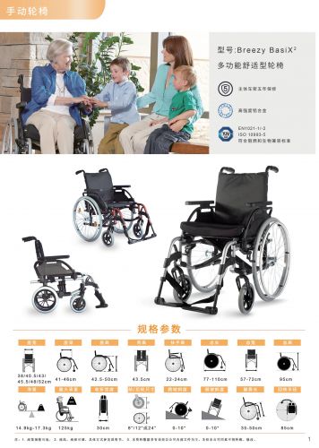 Basix2 是一款多功能舒適型輪椅,車架采用高強(qiáng)度航空級別鋁合金材質(zhì),重心、座高等多項可調(diào),同時可選配多種配件增加舒適度,其座背墊采用阻燃面料,符合國際生物相容ISO 10993-5標(biāo)準(zhǔn),面料和內(nèi)層海綿防火,符合EN1021-1/-2標(biāo)準(zhǔn)。