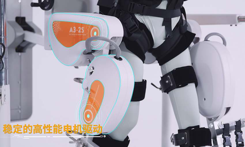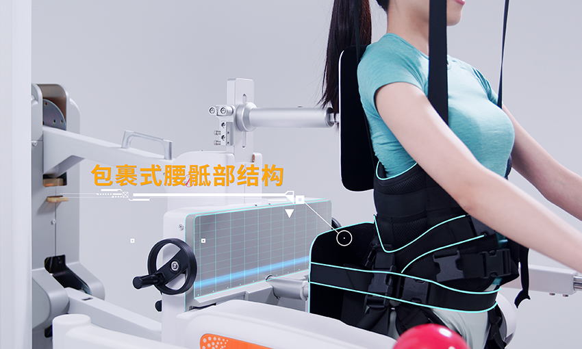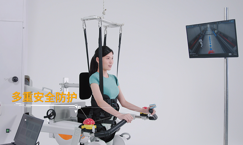 這是一款針對步行功能障礙進(jìn)行高效康復(fù)訓(xùn)練的下肢康復(fù)機(jī)器人。產(chǎn)品由計算機(jī)控制系統(tǒng)、步態(tài)矯正裝置系統(tǒng)、動靜態(tài)減重系統(tǒng)、醫(yī)用跑臺系統(tǒng)以及情景互動訓(xùn)練系統(tǒng)五大模塊組成。它可以使患者在直立體位下通過不斷重復(fù)且軌跡固定的步態(tài)訓(xùn)練,強(qiáng)化正常步態(tài)記憶,促進(jìn)患者本體感覺的輸入與正確運(yùn)動模式的形成,從而加強(qiáng)大腦結(jié)構(gòu)和功能重塑,建立正確的行走模式并有效的鍛煉其相關(guān)肌肉與關(guān)節(jié),加速下肢功能的恢復(fù)。