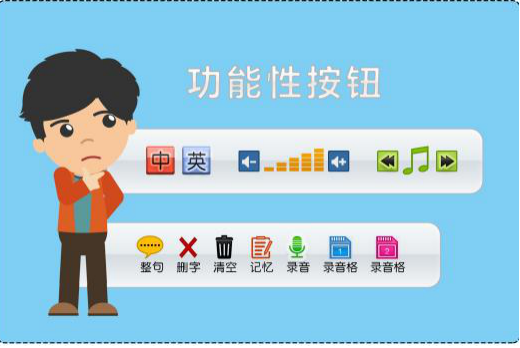 產(chǎn)品主要有溝通筆、核心語匯大冊、簡易版小冊、記憶貼片、錄音白板、教學(xué)設(shè)計冊構(gòu)成。溝通筆言語示范采用真人錄音,發(fā)音較為標準、清晰。學(xué)生使用點讀筆朗讀核心語匯冊中的名詞、基本句型和問答等貼合實際生活的內(nèi)容,能更快掌握發(fā)音、字形、實物、使用句型和問答交流,進而提高他們在一般溝通對話中的溝通效能。