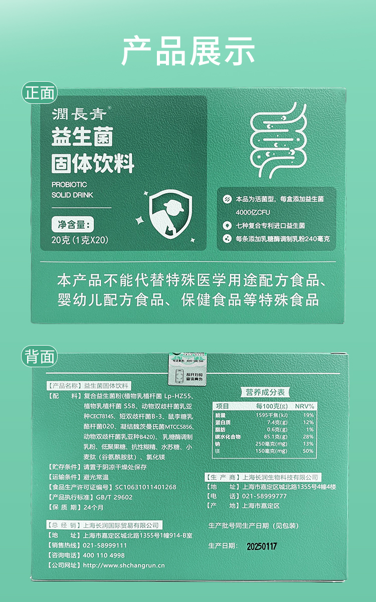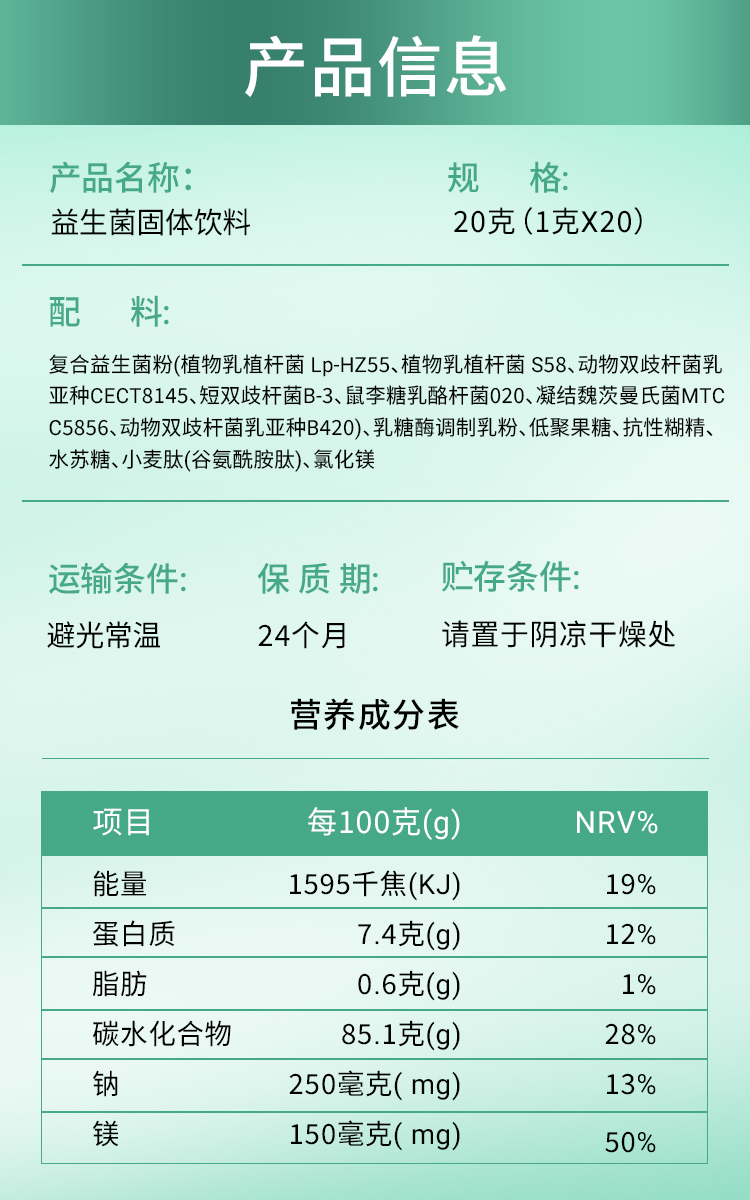 本品含七種復合專利的進口益生菌,每盒活性菌含量達4000億CFU,高活性含量益生菌調(diào)節(jié)菌群平衡,促進有益菌的生長,抑制有害菌。同時,益生菌可助于對營養(yǎng)物質(zhì)的吸收效率。