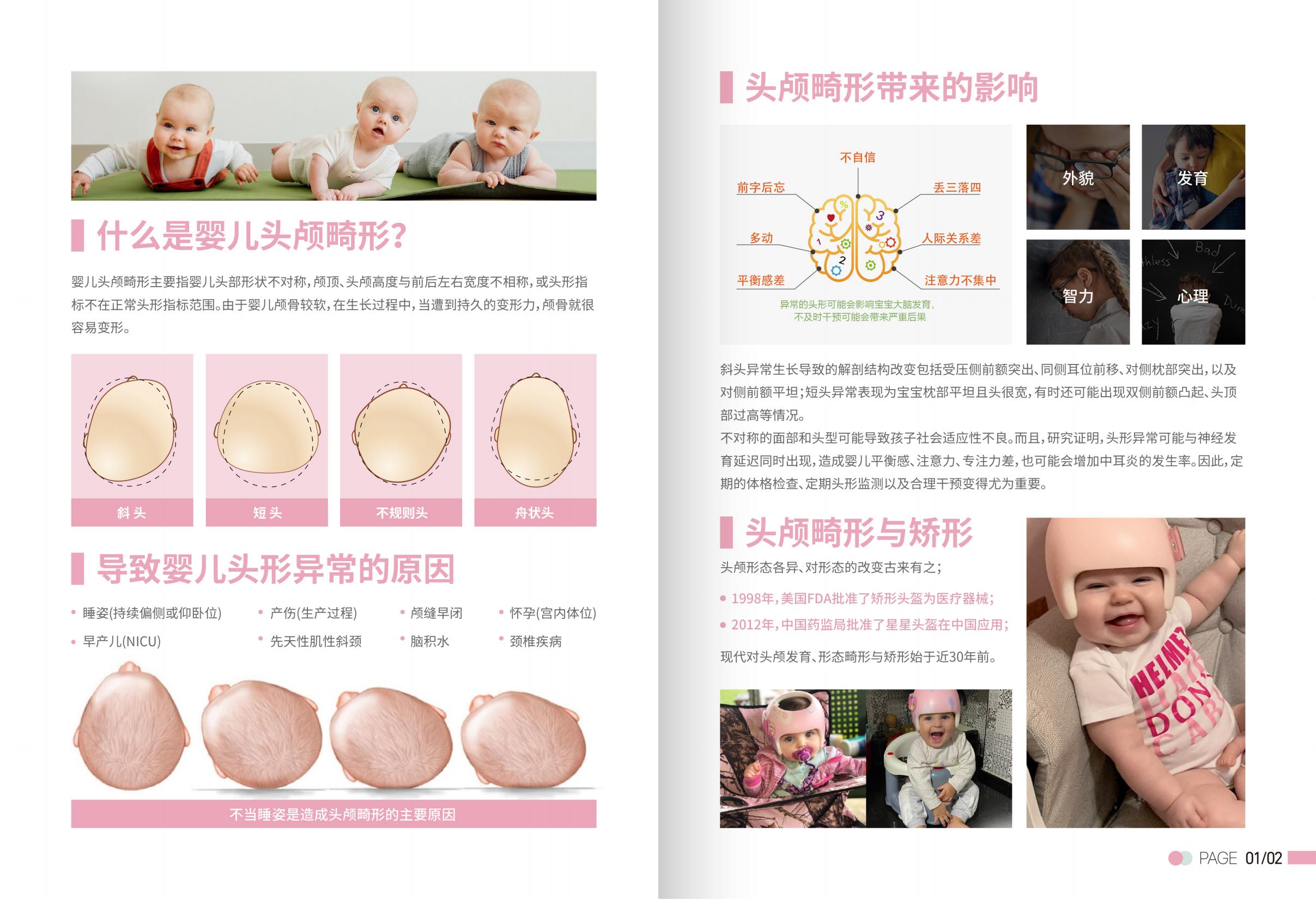 適用于3-18個(gè)月之間的嬰幼兒,通過給嬰幼兒頭部接觸部位一定的壓力,預(yù)防或治療先天性或后天發(fā)生的非對稱或斜頭癥及短頭癥。