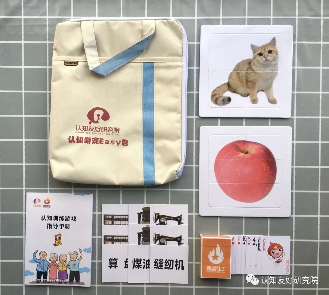 認(rèn)知游戲Easy包內(nèi)含一本《認(rèn)知訓(xùn)練游戲手冊》、一套《老物件消消樂》、一套《認(rèn)知游戲拼圖》、一副撲克牌。游戲道具和游戲方法是團(tuán)隊經(jīng)過多年的實踐經(jīng)驗總結(jié)整理出來的。認(rèn)知游戲Easy包參照五覺系統(tǒng),分別從觸覺、視覺、聽覺、嗅覺、味覺來提升認(rèn)知癥患者的認(rèn)知能力;此包種類多樣,玩法新穎,難度可變,可以供不同程度的認(rèn)知癥老人選擇。