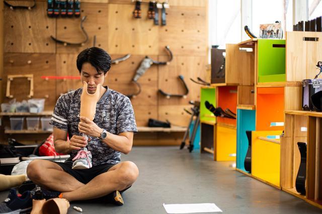 在日本,“假肢裝具師”不僅僅幫助使用者穿戴,還負(fù)責(zé)制作假肢。 資料圖沖野敦郎出生于兵庫(kù)縣。他對(duì)制作假肢的興趣起始于2000年。那一年正值悉尼奧運(yùn)會(huì)舉辦,還在上大學(xué)的他偶然間在電視上看到一場(chǎng)殘奧會(huì)的短跑比賽。片段中,穿著假肢的短跑運(yùn)動(dòng)員風(fēng)馳電掣般地跑過(guò)賽道,給他留下了深刻的印象。“上面是人類(lèi)的肉體,下面是機(jī)械腿,看到的瞬間,覺(jué)得好帥!”,沖野先生接受澎湃新聞采訪時(shí)回憶道。而那一幕的沖擊,也徹底改變了沖野先生的人生。
