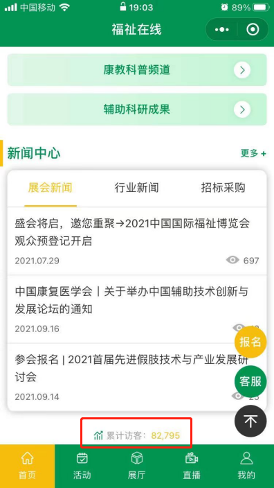 “福祉在線”小程序,是參展企業(yè)的線上展廳,可發(fā)布產(chǎn)品及活動信息。
