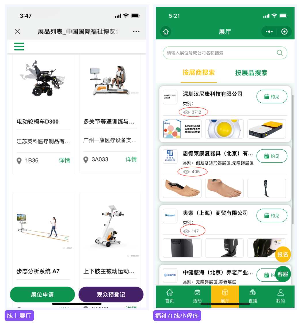 官方線上展廳及“福祉在線”小程序年訪問量高達50萬+,全面呈現(xiàn)嚴選福祉、康復行業(yè)好產(chǎn)品、新技術(shù), 幫助展商企業(yè)從行業(yè)中脫穎而出。