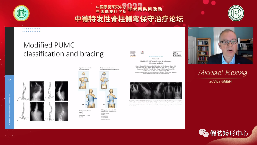 Michael Rexing教授主要講述了色努脊柱側(cè)彎矯形器的基本原理以及發(fā)展歷程,矯形器分型及使用,在臨床中使用體操治療和矯形器治療相結(jié)合,為患者提供更好的治療效果。