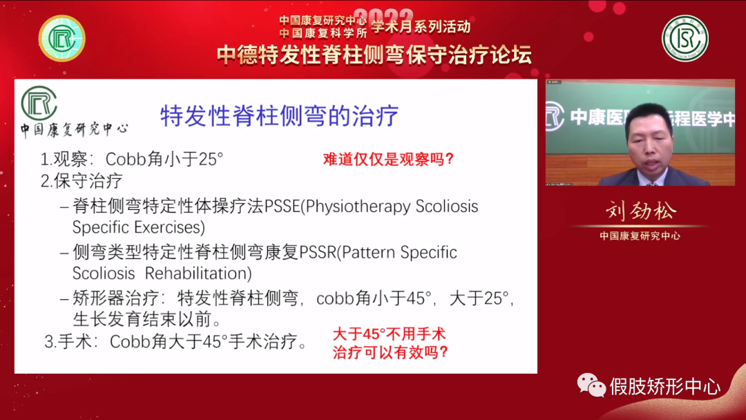 此次公益論壇就青少年特發(fā)性脊柱側(cè)彎治療的相關(guān)問(wèn)題展開(kāi)了討論,中國(guó)康復(fù)研究中心假肢矯形部主任劉勁松作開(kāi)幕致辭。