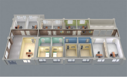 三級聽力語言康復(fù)中心是地區(qū)性技術(shù)資源中心,建筑面積不低于6000平方米,其中業(yè)務(wù)用房面積不低于總面積的80%。具備在二級機構(gòu)功能基礎(chǔ)上,為聽障兒童開展心理行為問題的診斷及干預(yù)功能。