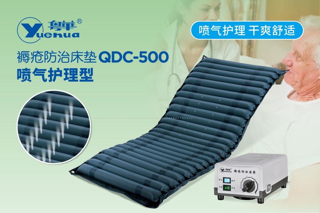 粵華波動噴氣型褥瘡防治床墊QDC-500——適用于長期臥床病人護理。依靠波動功能有效分散病人與床墊接觸部位的壓力,預防和緩解褥瘡。床墊整床采用優(yōu)質(zhì)尼龍PCV制成,并帶有多個微小氣孔,使用時有氣體噴出,保持背部皮膚的干爽舒適。保證床墊的耐磨舒適的同時,保證了床墊的透氣性。是集多種功能為一體的綜合型長期護理床墊。