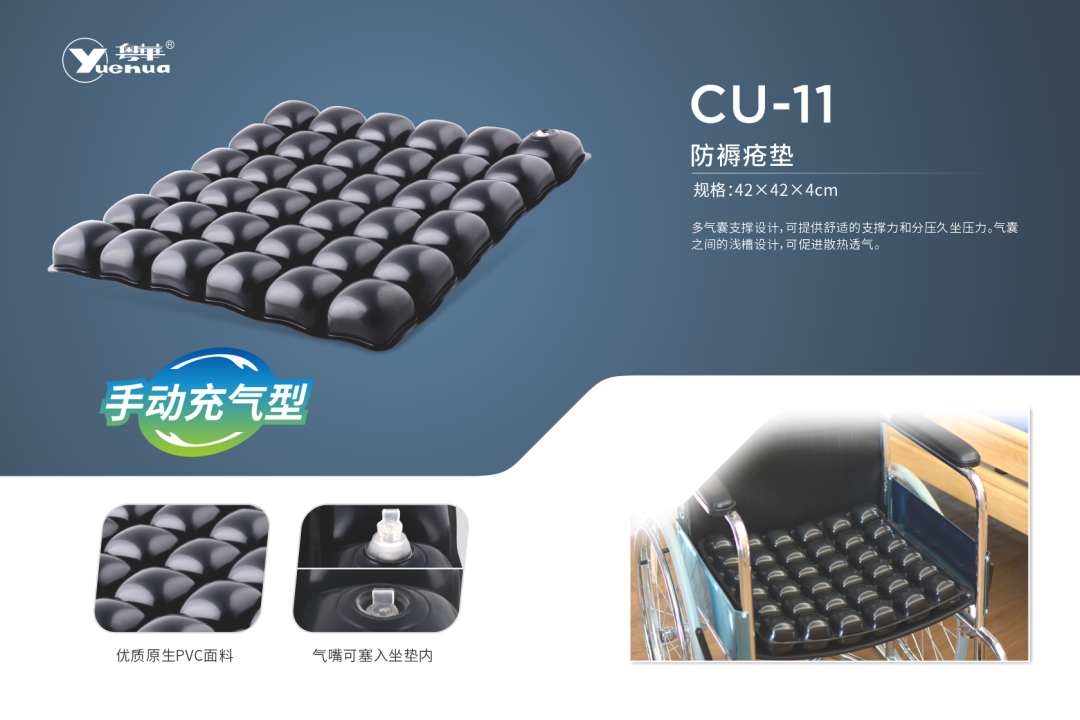 防褥瘡墊CU-12,多氣囊支撐與半記憶功能設計,以更好適配臀型與分壓臀部壓力。自動充氣功能,可便捷調(diào)配適合個人體感的氣壓。