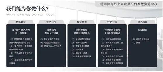 該服務(wù)平臺能針對各省特殊教育資源中心綜合管理及服務(wù)平臺的建設(shè)現(xiàn)狀和日常管理工作的開展情況,提供合理的優(yōu)化方案。主要內(nèi)容包括:平臺推廣服務(wù)、課程資源制作服務(wù)、特殊兒童入學(xué)安置評估量表研發(fā)服務(wù)、后期維護(hù)等。