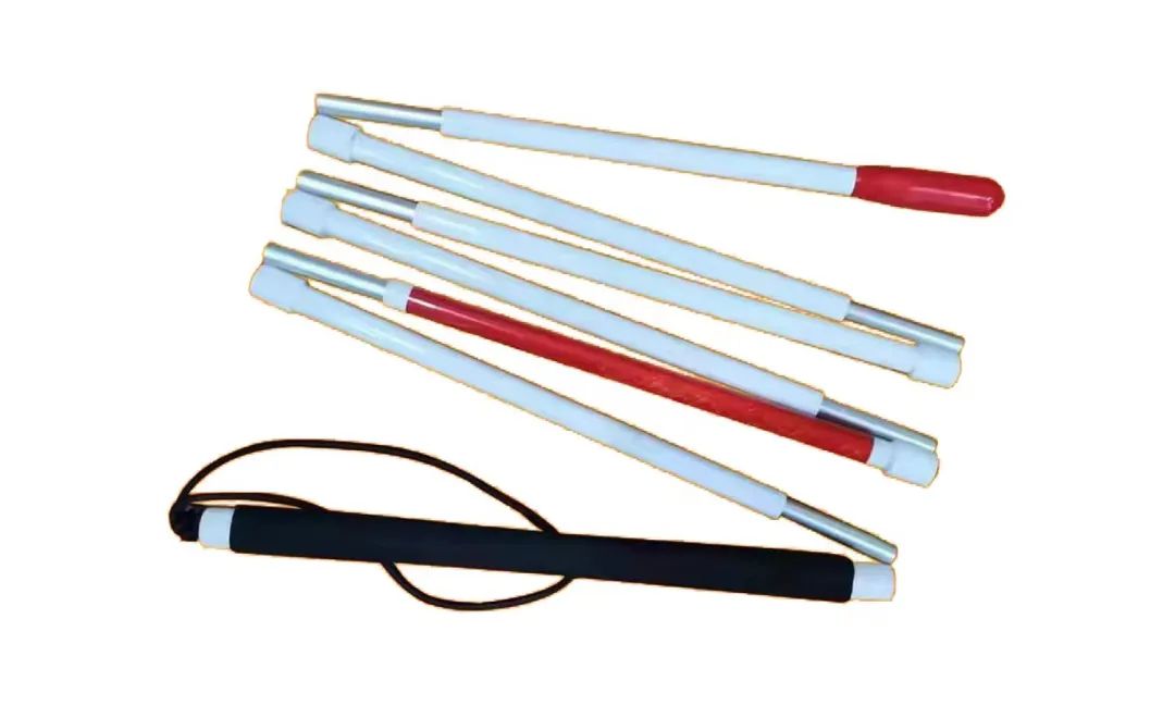 盲杖采用超輕碳纖維材料,僅重100g。手柄結(jié)構(gòu)設(shè)計(jì)適合盲杖使用中正確握持,手柄上端裝有彈性腕帶,不易從手中滑落。折疊連接部件連接牢固,具有防松動裝置。整杖彎曲15~20°后可自行復(fù)原。七節(jié)折疊,折疊和打開及使用安全,無卡滯現(xiàn)象。杖尖適合在水泥、瀝青、磚質(zhì)等硬質(zhì)路面上使用,易更換。適用于低視力、一/二級盲和全盲人群。