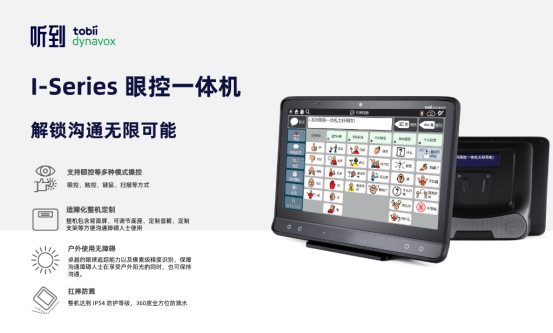 I-Series 眼控一體機(jī)是一臺(tái)可以完全用眼睛操作的Windows電腦,充分考慮不同用戶的需求,以幫助用戶實(shí)現(xiàn)操作電腦,自由表達(dá),采用全球領(lǐng)先的眼控平臺(tái),可實(shí)現(xiàn)多模式聯(lián)合操控,并配合專為眼控所設(shè)計(jì)的AAC溝通軟件。