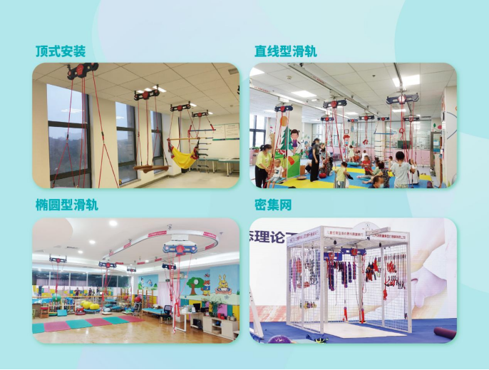 以懸吊技術(shù)為核心,并結(jié)合其他康復(fù)訓(xùn)練有關(guān)的輔助設(shè)備,實現(xiàn)個體化訓(xùn)練,多人化訓(xùn)練同時進行,并針對性訓(xùn)練。恢復(fù)患者平衡功能,協(xié)調(diào)能力、控制能力、支配能力,緩解全身痙攣狀態(tài),改善關(guān)節(jié)活動度,增強肌力,達到中樞神經(jīng)系統(tǒng)的通路重建功能。集神經(jīng)發(fā)育療法、感覺統(tǒng)合訓(xùn)練、平衡姿態(tài)矯正,引導(dǎo)教育于一體,用于肌張力的緩解、肌力的增強、平衡協(xié)調(diào)性的提高。