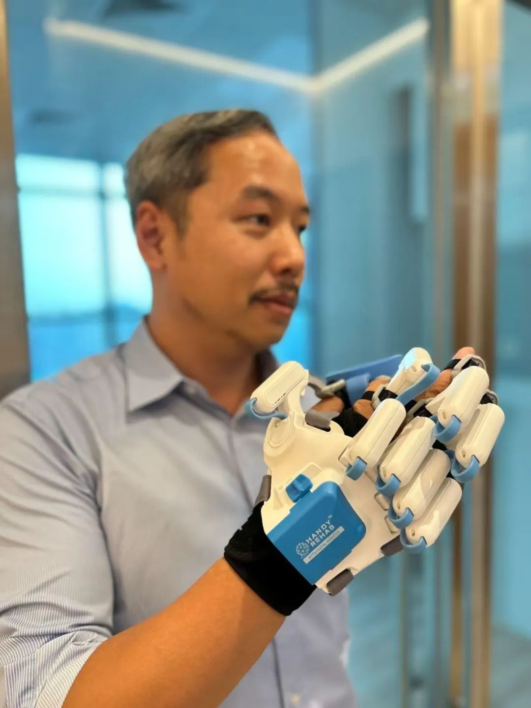 HANDYREHAB HandyGlove是一款智能機(jī)器人手套系統(tǒng),已獲得專利并經(jīng)過臨床驗(yàn)證,可幫助中風(fēng)康復(fù)患者恢復(fù)高達(dá)90%的完全運(yùn)動(dòng)控制能力。這是一款便攜式輔助設(shè)備,能夠幫助殘疾人士完成日常任務(wù),例如拿起一杯水。
