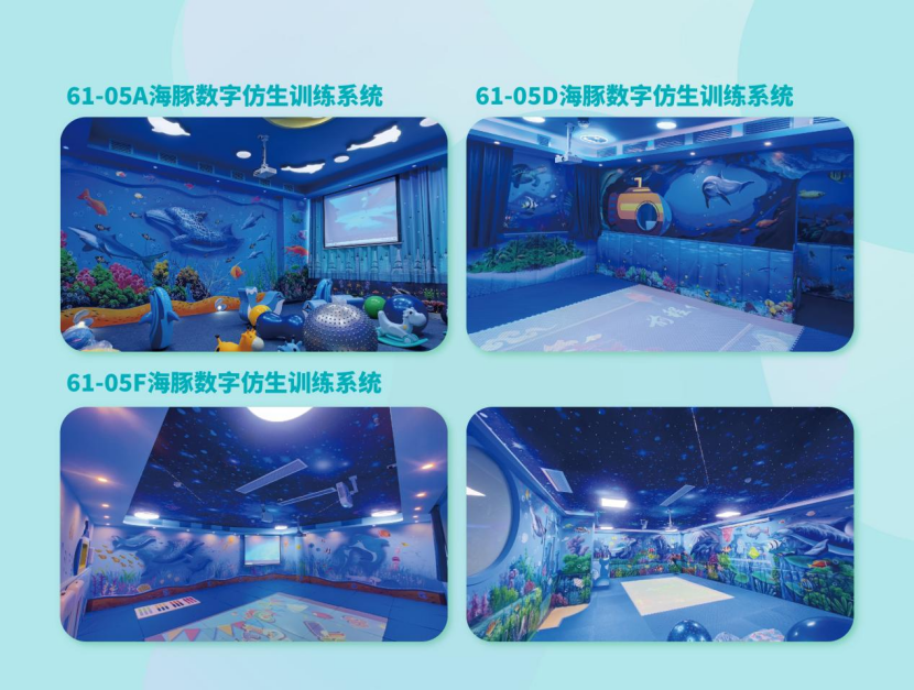 61-05系列海豚數(shù)字仿生訓(xùn)練系統(tǒng)是基于數(shù)字化仿生高頻海豚音為大環(huán)境大背景的綜合視聽系統(tǒng),核心專利技術(shù)為“海豚仿生信號發(fā)生器”,該發(fā)生器通過數(shù)字仿生學(xué)技術(shù)模仿海豚等人類親和動物在不同生理狀態(tài)下發(fā)出的對人體尤其是中樞神經(jīng)系統(tǒng)有協(xié)調(diào)和促進(jìn)功能的聲源信號。通過海豚仿生學(xué)有效速率轉(zhuǎn)換,通過輸出控制臺在特定的視聽環(huán)境中隨機(jī)變頻轉(zhuǎn)換成人類可聽到的頻率進(jìn)行投放,通過結(jié)合多媒體數(shù)字投影、數(shù)字調(diào)制燈光組成沉浸式的視聽覺整合環(huán)境,讓受訓(xùn)者在“沉浸式”環(huán)境中以安寧、放松、平靜的狀態(tài),接受視、聽、觸覺等多種視聽感知覺整合刺激,以達(dá)到提升康復(fù)訓(xùn)練的目的。