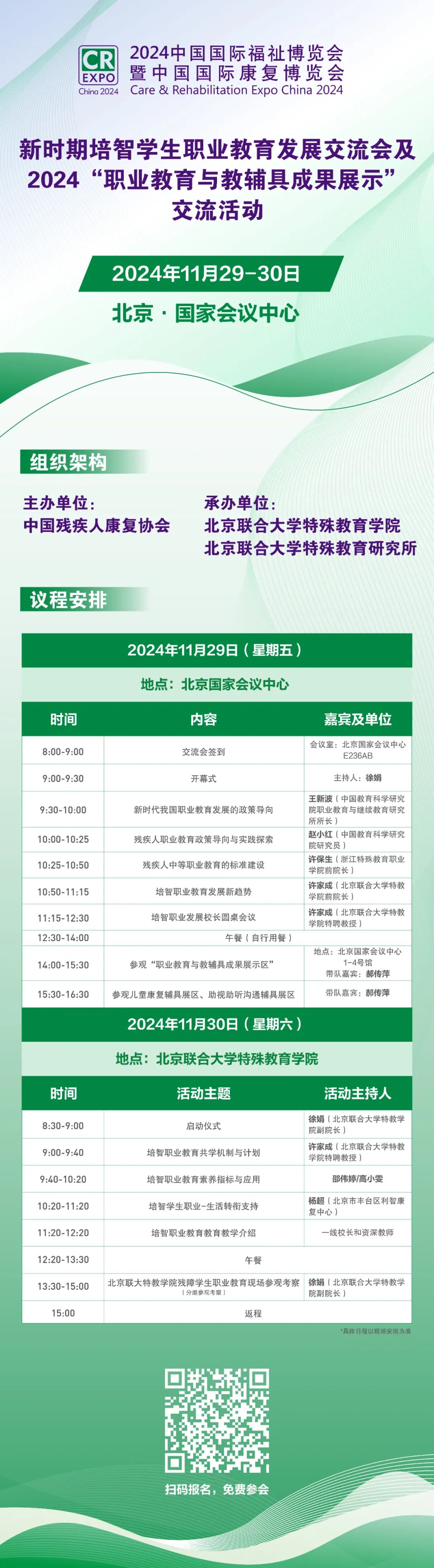 點擊鏈接,查看參會通知→關于舉辦新時期培智學生職業(yè)教育發(fā)展交流會及2024“職業(yè)教育與教輔具成果展示”交流活動的通知