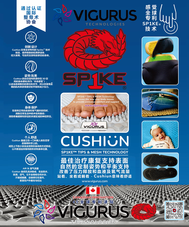 Vigurus 的 Sp1ke® Tips 和 Mesh 仿生結(jié)構(gòu)科學提供卓越的緩沖舒適性和壓力分布。對于個人健康和健身以及移動產(chǎn)品,Sp1ke® 在人們坐著、站著、跪著或躺著的任何地方都能無與倫比地增強血液/氧氣流動、姿勢、本體感覺和體感刺激。