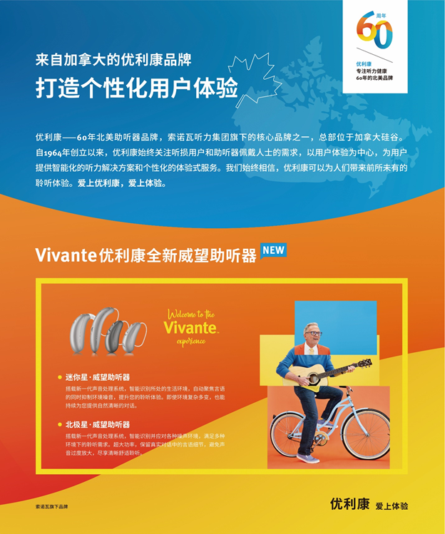優(yōu)利康(Unitron)專業(yè)助聽器品牌,隸屬全球領(lǐng)先的聽力集團sonova公司,致力于為消費者提供專業(yè)的驗配處方助聽器產(chǎn)品。優(yōu)利康于1964年成立,總部位于加拿大滑鐵盧地區(qū)。60多年堅持致力于開發(fā)提供非凡個性化水平的聲學技術(shù)、產(chǎn)品和服務。我們所做的一切都是基于我們的信念,即人們應該對整個聽力保健體驗感到非常滿意。這就是為什么我們專注于為人們提供改善生活的聽力體驗,在聽力護理過程的每個階段為客戶提供支持。致力于追求卓越產(chǎn)品性能、設(shè)計和客戶滿意度的承諾感到自豪,旗下的威望系列助聽器采用最先進的聲學算法以及集團自研的專業(yè)助聽器芯片,已在中國市場同步供應。