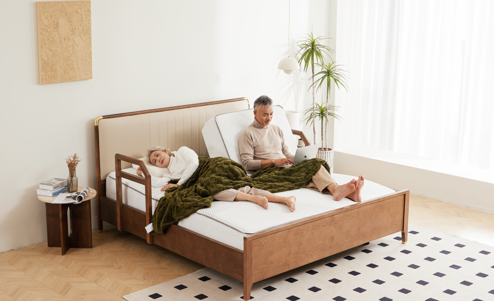 舒眠H921屬于適老化電動床,單人1.2米寬度尺寸,更加舒適。具備背部升降、腿部升降和整床升降,可滿足老人日常起居,方便上下床;以及后期處于護理階段,也方便家人照護。兩側(cè)扶手,便于抓握和儲物,后期根據(jù)老人需求,也可升級長護欄。