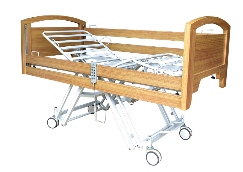 五功能電動護理床,功能齊全,全面護理臥床患者,有起背,抬腿,高度調(diào)節(jié),床體前傾和后傾這五種功能,使日常護理更為便捷。木質(zhì)床頭尾板和護欄設(shè)計體現(xiàn)家居化,更舒適,更溫馨,搭配靜音萬向腳輪使用更方便。