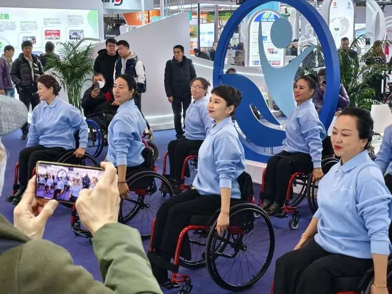 11月28日,2024中國國際福祉博覽會暨中國國際康復(fù)博覽會,北京心之源輪椅舞蹈隊(duì)正在表演。劉胤衡/攝