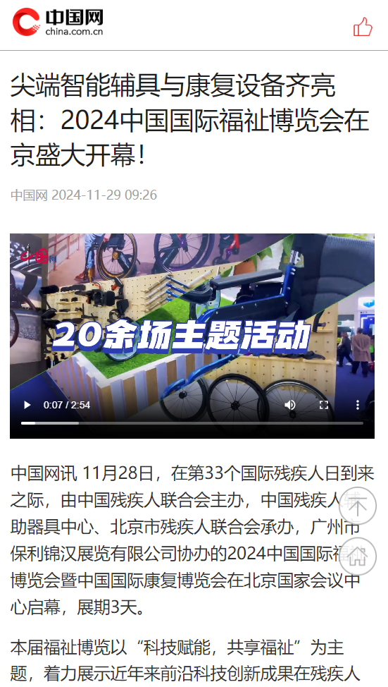 【中國(guó)網(wǎng)】尖端智能輔具與康復(fù)設(shè)備齊亮相:2024中國(guó)國(guó)際福祉博覽會(huì)在京盛大開幕!