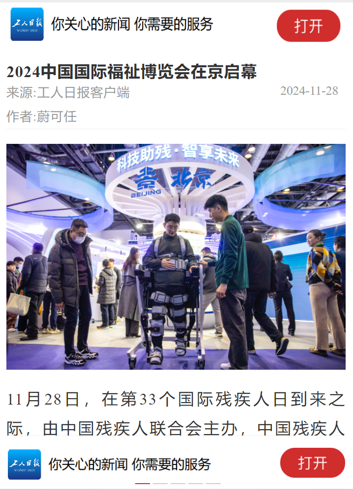 11月28日,在第33個(gè)國(guó)際殘疾人日到來(lái)之際,由中國(guó)殘疾人聯(lián)合會(huì)主辦,中國(guó)殘疾人輔助器具中心、北京市殘疾人聯(lián)合會(huì)承辦,廣州市保利錦漢展覽有限公司協(xié)辦的2024中國(guó)國(guó)際福祉博覽會(huì)暨中國(guó)國(guó)際康復(fù)博覽會(huì)在北京國(guó)家會(huì)議中心啟幕,展期3天。