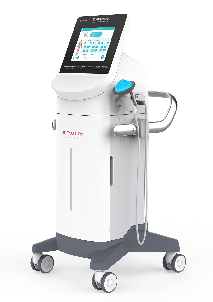 壓電式?jīng)_擊波原理是將數(shù)百計(jì)的壓電晶體,排列在一個凹形面上。外界電場通過壓電晶體時,使晶體體積發(fā)生改變,產(chǎn)生壓力波。當(dāng)晶體復(fù)原時,產(chǎn)生張力波。全部壓電晶體共同振動,一起發(fā)出沖擊波,經(jīng)橢球體的收集,使全部能量聚焦于治療部位。所有的沖擊波能量在球心附近會聚,在極高的能量及其誘發(fā)的空化的破壞作用到病灶區(qū)域等。