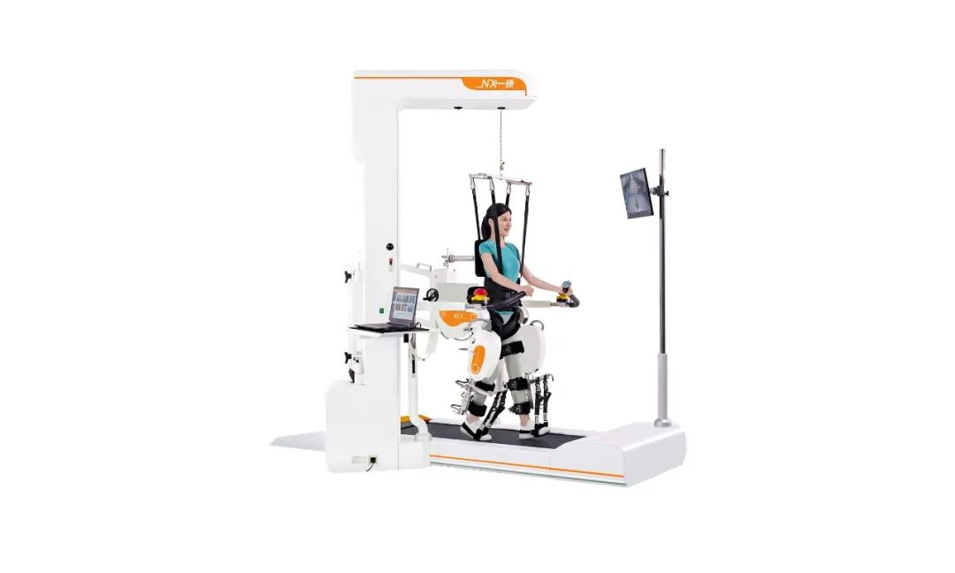 這是一款針對步行功能障礙進行高效康復(fù)訓(xùn)練的下肢康復(fù)機器人。產(chǎn)品由計算機控制系統(tǒng)、步態(tài)矯正裝置系統(tǒng)、動靜態(tài)減重系統(tǒng)、醫(yī)用跑臺系統(tǒng)以及情景互動訓(xùn)練系統(tǒng)五大模塊組成。它可以使患者在直立體位下通過不斷重復(fù)且軌跡固定的步態(tài)訓(xùn)練,強化正常步態(tài)記憶,促進患者本體感覺的輸入與正確運動模式的形成,從而加強大腦結(jié)構(gòu)和功能重塑,建立正確的行走模式并有效的鍛煉其相關(guān)肌肉與關(guān)節(jié),加速下肢功能的恢復(fù)。