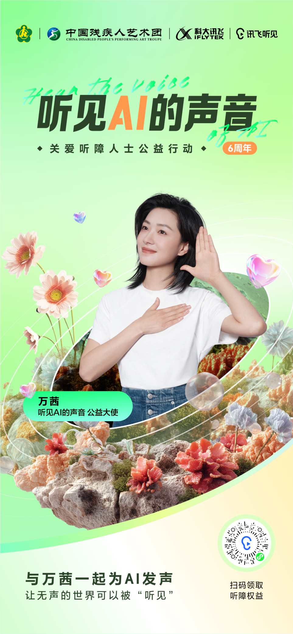 科大訊飛聯(lián)合中國(guó)聾協(xié)、中國(guó)殘疾人藝術(shù)團(tuán)于2019年5月19日,全國(guó)助殘日正式發(fā)起“聽(tīng)見(jiàn)AI的聲音”關(guān)愛(ài)聽(tīng)障人士公益項(xiàng)目。由訊飛聽(tīng)見(jiàn)作為承辦方,基于訊飛聽(tīng)見(jiàn)APP、訊飛同傳等系列智能語(yǔ)音轉(zhuǎn)寫產(chǎn)品,線上線下聯(lián)合互動(dòng)。將他人所述語(yǔ)言實(shí)時(shí)轉(zhuǎn)寫成文字,幫助聽(tīng)障人士在日常社會(huì)生活中與他人無(wú)障礙交流、理解意思,更好地融入社會(huì),實(shí)現(xiàn)價(jià)值。該公益項(xiàng)目邀請(qǐng)到著名影視演員萬(wàn)茜擔(dān)任公益大使,2025年科大訊飛攜手央視春晚,為央視春晚無(wú)障礙轉(zhuǎn)播提供實(shí)時(shí)字幕,讓全國(guó)觀眾得以同頻歡樂(lè)。今年是“聽(tīng)見(jiàn)AI的聲音”6周年,截至目前聽(tīng)障認(rèn)證提交用戶近10萬(wàn)人,項(xiàng)目已累計(jì)為聽(tīng)障群體定向捐贈(zèng)時(shí)長(zhǎng)超2億分鐘,成為大家工作、生活的AI助手。
