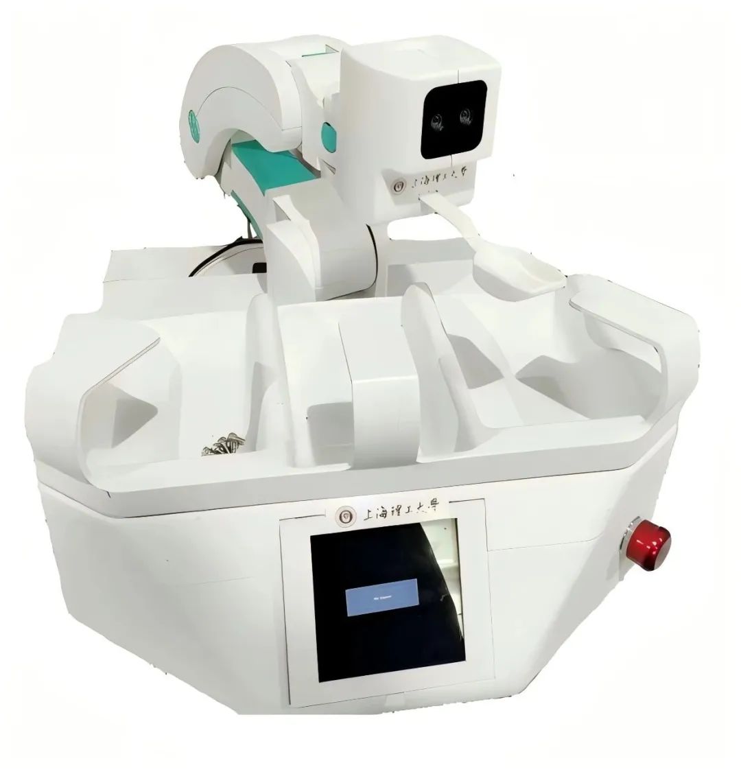 攜惠護(hù)理轉(zhuǎn)移機(jī)器人,座椅與目標(biāo)智能適配、無縫對接,實(shí)現(xiàn)輕松自主轉(zhuǎn)移。上海理工大學(xué)智能助餐機(jī)器人,提出剛?cè)狁詈系臋C(jī)械結(jié)構(gòu)結(jié)合智能控制策略,實(shí)現(xiàn)機(jī)械臂的柔性交互,解決失能患者無法獨(dú)立進(jìn)食的問題,減輕康養(yǎng)機(jī)構(gòu)、醫(yī)院、家庭環(huán)境下的照護(hù)壓力。