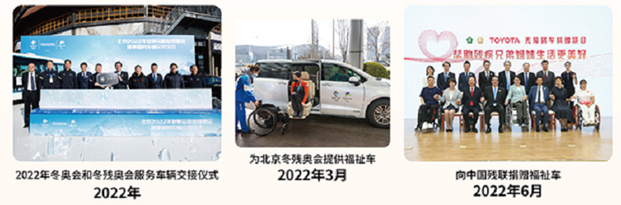 2022年6月,豐田將剛結(jié)束了北京冬殘奧服務(wù)的238輛無(wú)障礙車(包括賽那、海艾士、柯斯達(dá)三種車型),全數(shù)捐贈(zèng)給中國(guó)殘疾人聯(lián)合會(huì),并通過(guò)中國(guó)殘疾人福利基金會(huì)下發(fā)到全國(guó)215家殘疾人機(jī)構(gòu),用于殘疾人出行,并以此為契機(jī),努力推進(jìn)福祉事業(yè)在中國(guó)的發(fā)展。