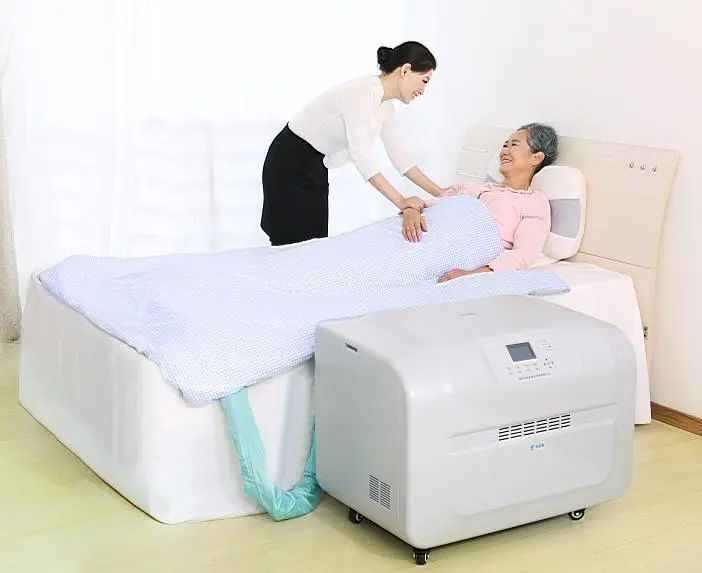 2019福祉博覽會(huì)現(xiàn)場(chǎng)洗澡演示:臥床人平躺在床上不用搬動(dòng),通過(guò)給洗澡床充氣即可淋浴洗澡。