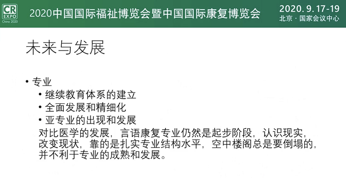 國際上目前 SLP(語言病理學(xué)家)的需求量標(biāo)準(zhǔn)是每 10 萬人中有20 名的配置。按此標(biāo)準(zhǔn)推算,中國大約需要語言治療師 26 萬名,而目前中國培訓(xùn)的能進(jìn)行大腦和神經(jīng)損傷所致的語言障礙的言語治療師只有大約 1000 名,包括全國的聾兒語訓(xùn)教師,總計約 5000 余名。在水平上和數(shù)量上遠(yuǎn)遠(yuǎn)不能適應(yīng)大量言語障礙患者的需求。