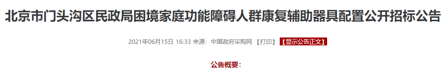 供應(yīng)商們看過(guò)來(lái)!近期,北京、廣州、吉林、甘肅、廣西等地相繼發(fā)布了殘疾人康復(fù)輔具招標(biāo)采購(gòu)公告,預(yù)算總額超2100萬(wàn)元,詳情如下