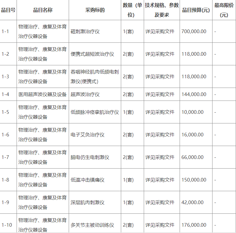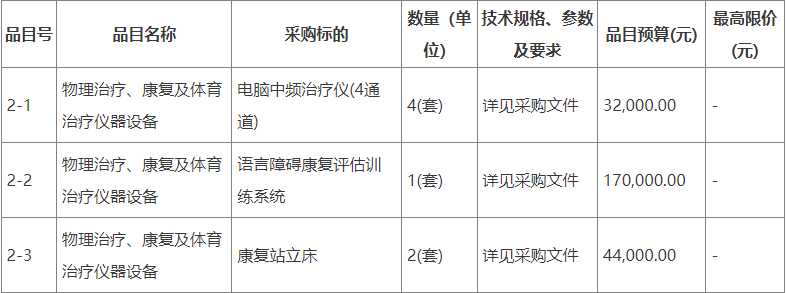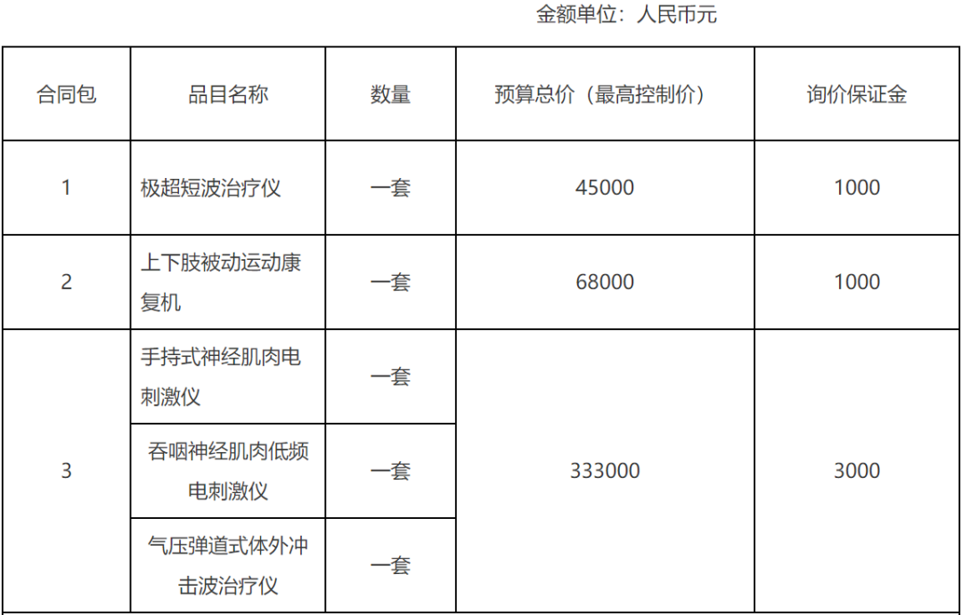 采購需求:康復(fù)醫(yī)學(xué)科設(shè)備,詳見用戶需求書
