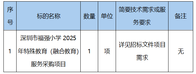 深圳市福強(qiáng)小學(xué)2025年特殊教育(融合教育)服務(wù)采購(gòu)項(xiàng)目招標(biāo)公告