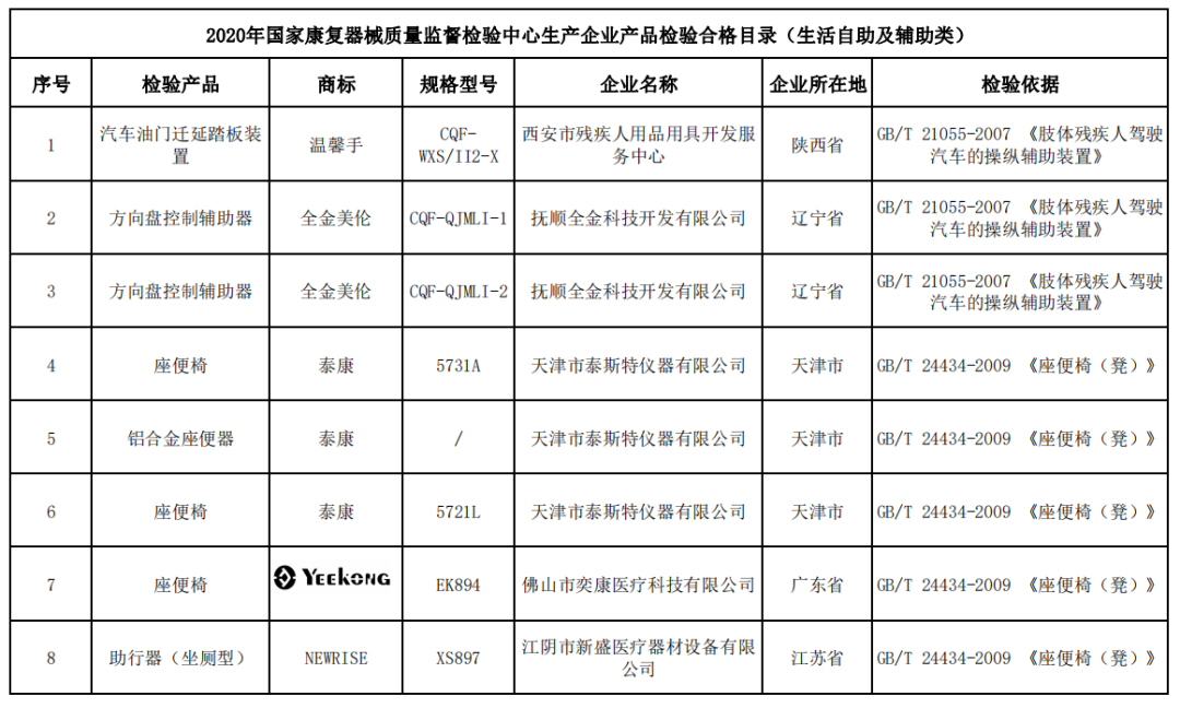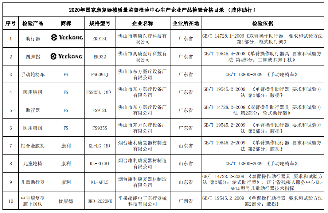 日前,中國(guó)殘疾人輔助器具中心公布了《國(guó)家康復(fù)器械質(zhì)量監(jiān)督檢驗(yàn)中心 2020年生產(chǎn)企業(yè)產(chǎn)品檢驗(yàn)合格目錄》,目錄包含假肢、肢體助行、聽(tīng)力、視力、康復(fù)訓(xùn)練器械、生活自助及輔助類(lèi)共6類(lèi)產(chǎn)品。