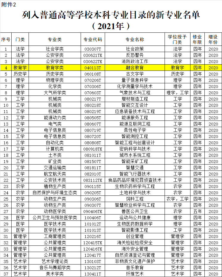 2.列入普通高等學(xué)校本科專(zhuān)業(yè)目錄的新專(zhuān)業(yè)名單(2021年)